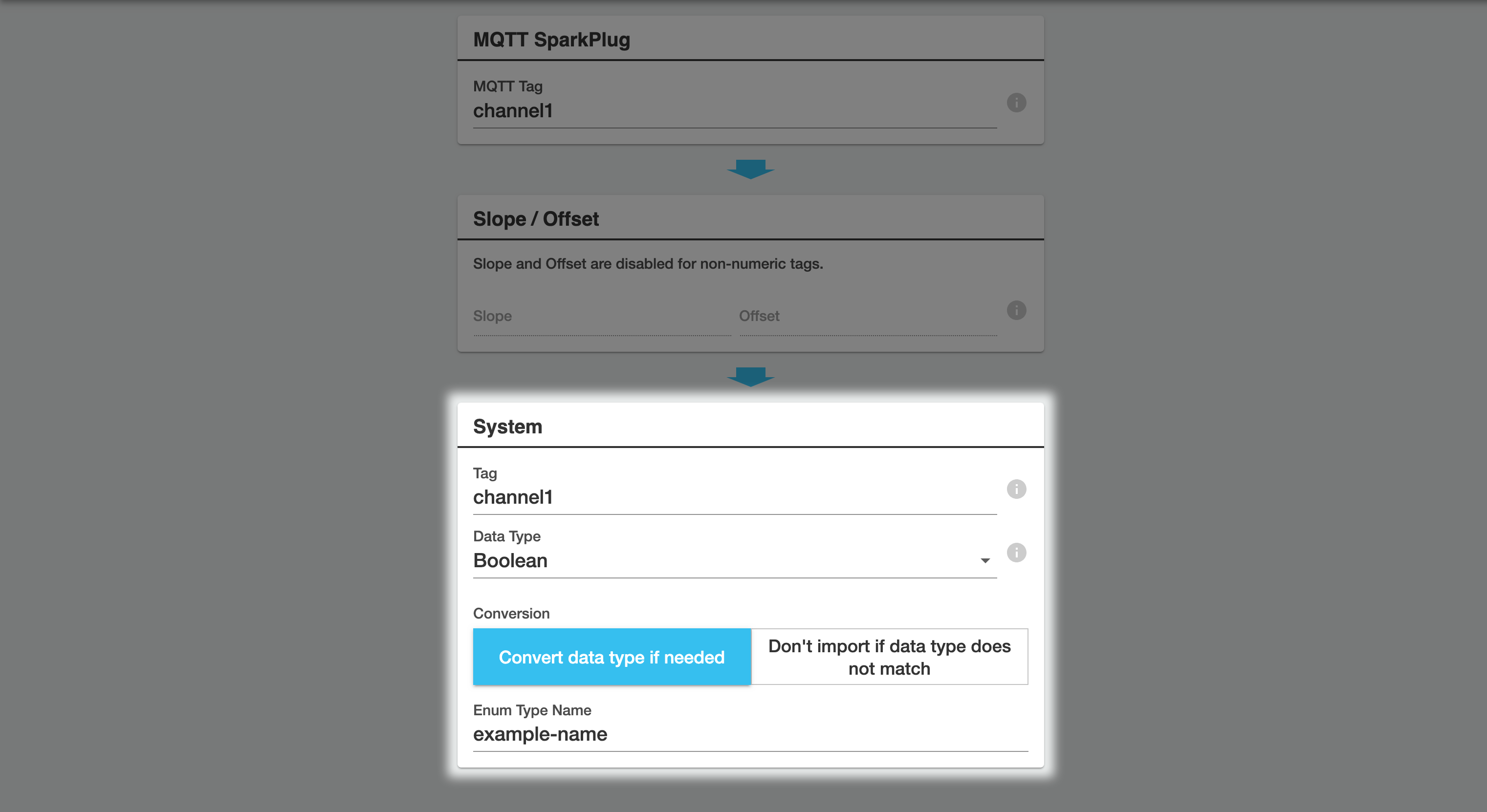 There are options to link a channel to a enum or bit field type in Clarity automatically by setting the name of the type in Clarity Gateway. This information allows the receiving cloud system to link this tag to the correct enum type definition, but Clarity Gateway itself does not perform any decoding.