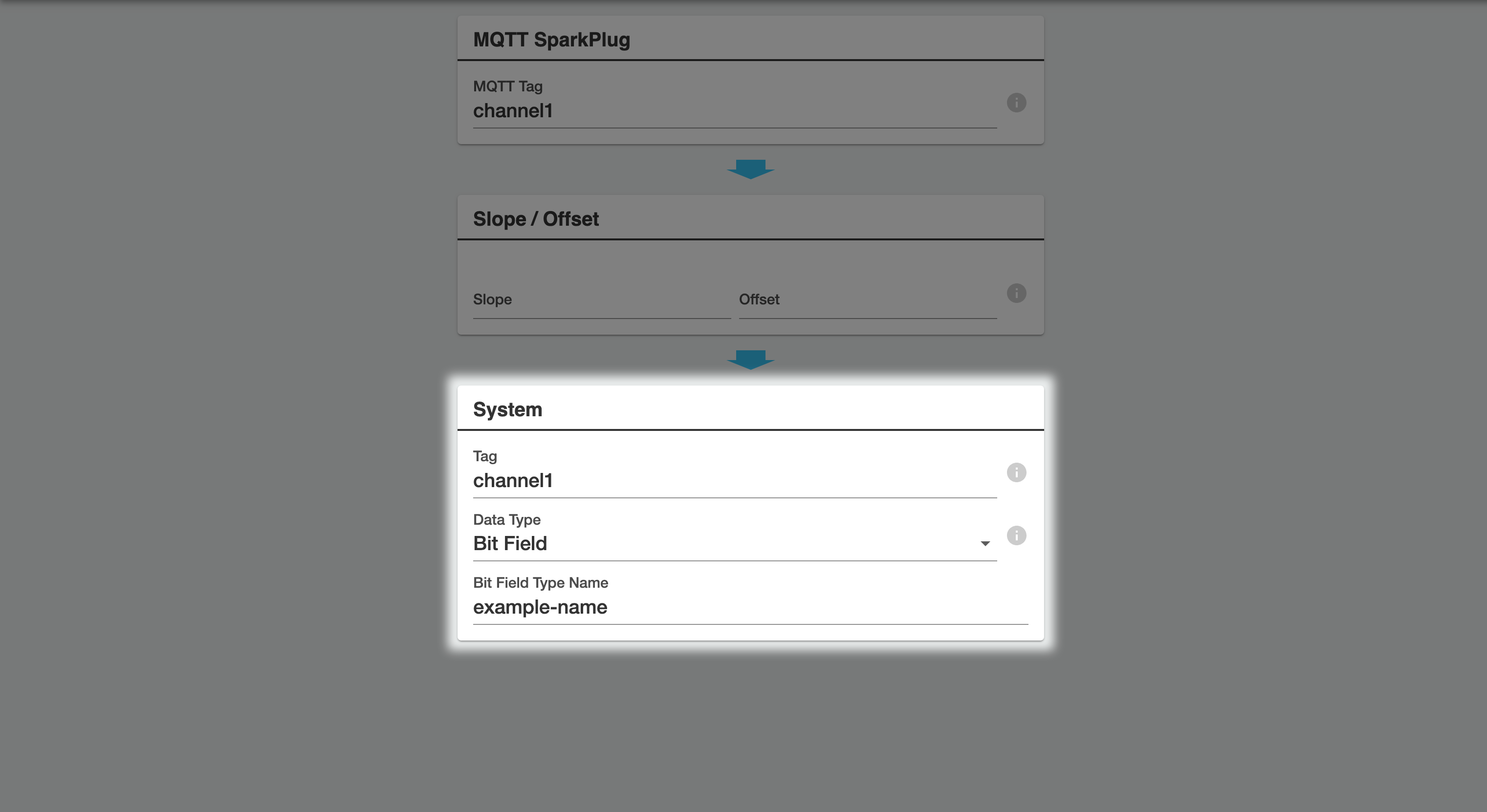 In the "system" portion of a "From" channel, set the data type to "Bit Field, and type in the bit field type name you want to link in Clarity. Click "Save.