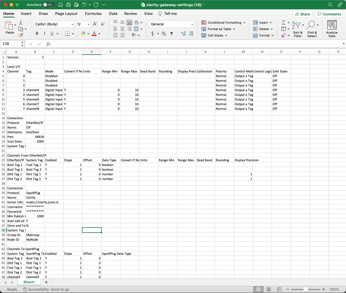 Settings can be exported as either a **JSON** file, or as a spreadsheet in **XLS**, **XLSX**, or **CSV** format. The spreadsheet formats are easy to edit in Excel and you can optionally use them to copy in channel settings manually from your own records.