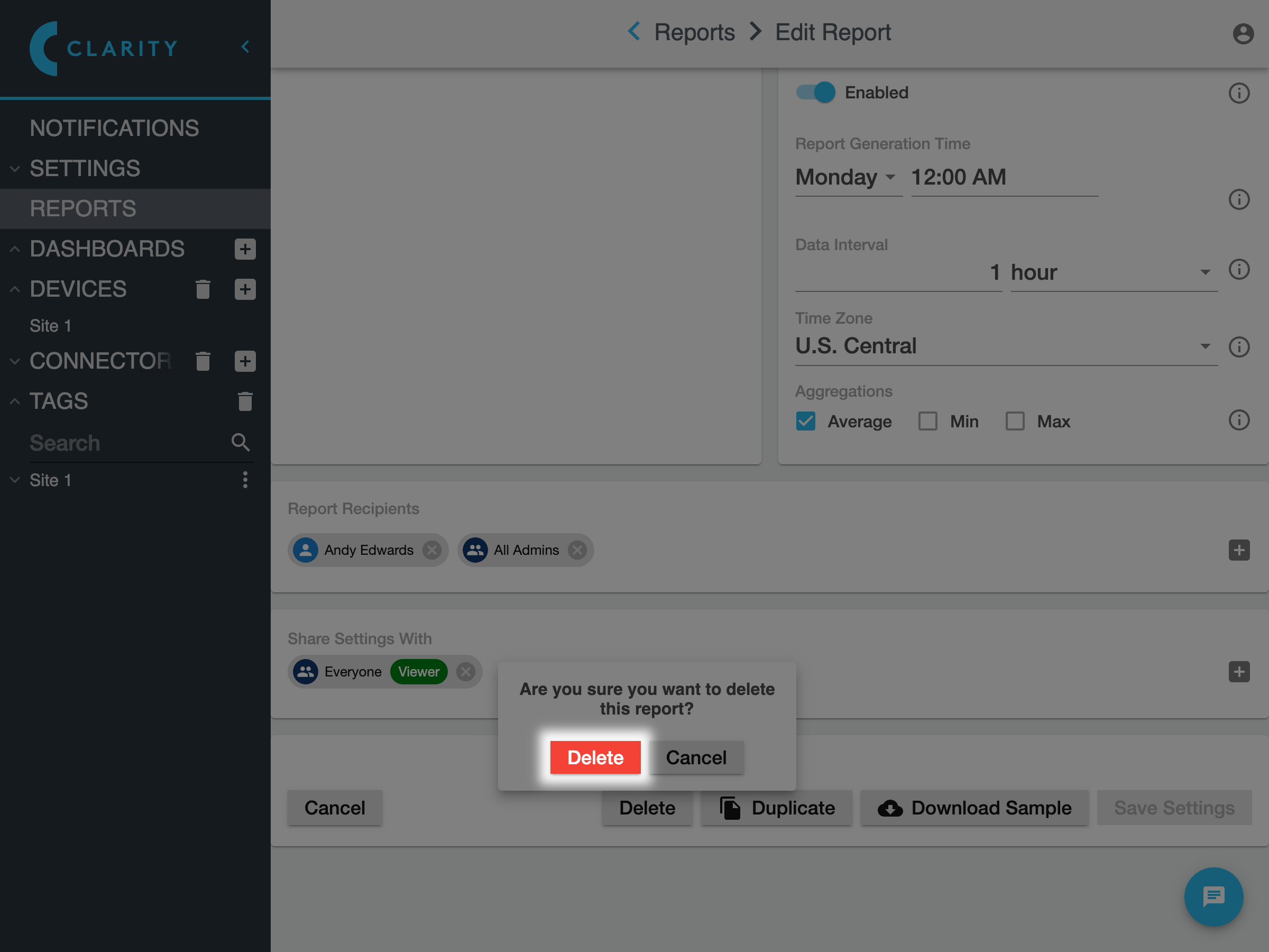 Then in the Edit Report view that appears, click the Delete button at the bottom: