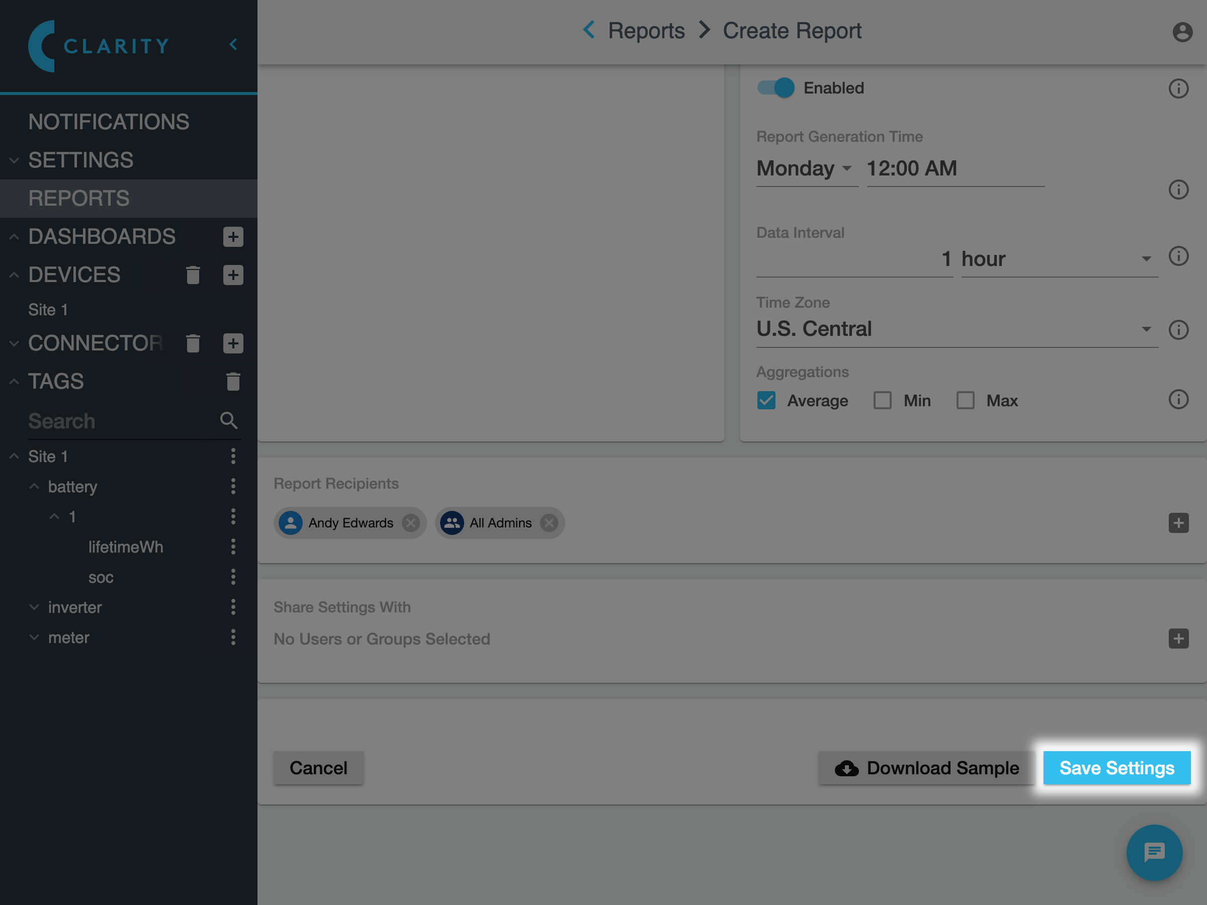 Finally, click **Save Settings** at the bottom of the page to create the report: